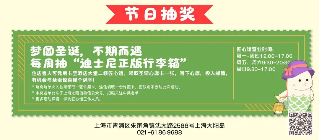 住店客人可凭房卡至匠心馆领取圣诞心愿卡一张。