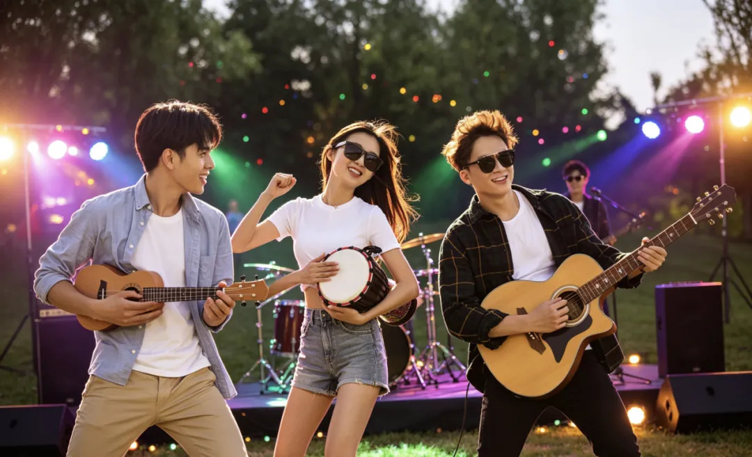 🎸 林间Live剧场:吉他声混着鸟鸣,微风拂过树叶,氛围感直接拉满,浪漫到想跳舞